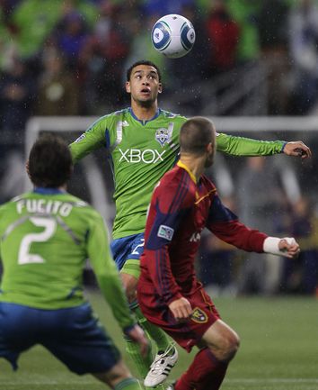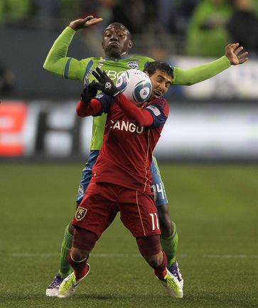 Футбол. США. Чемпионат MLS. Плей-офф. "Сиэтл" - "Реал Солт-Лейк" - 2:0. Голы: Освальдо Алонсо, 55(с пенальти) -1:0, Lamar Neagle - 2:0. Фото AFP