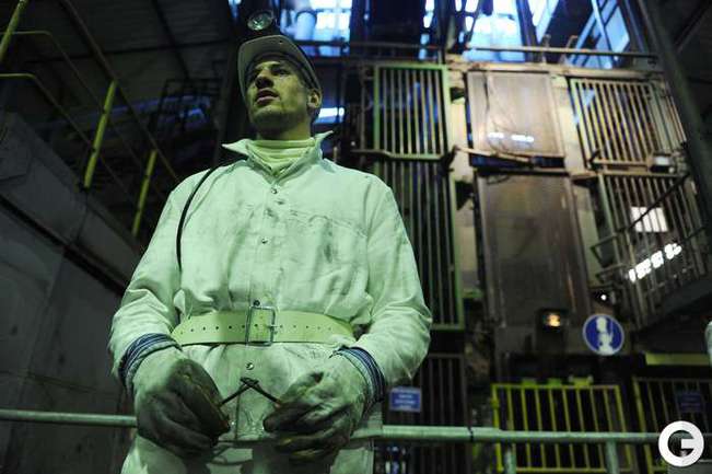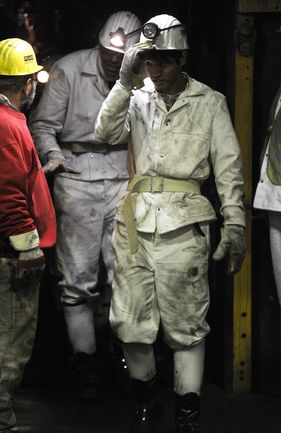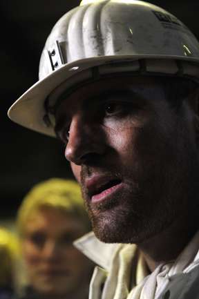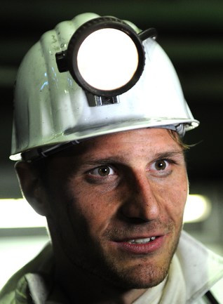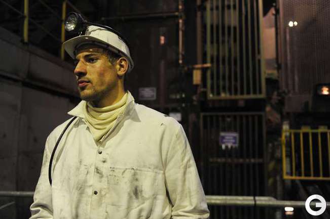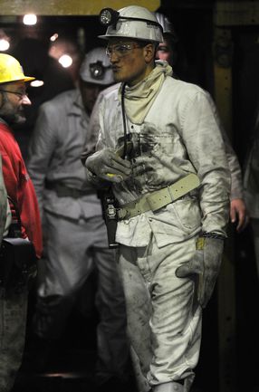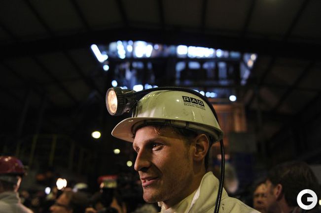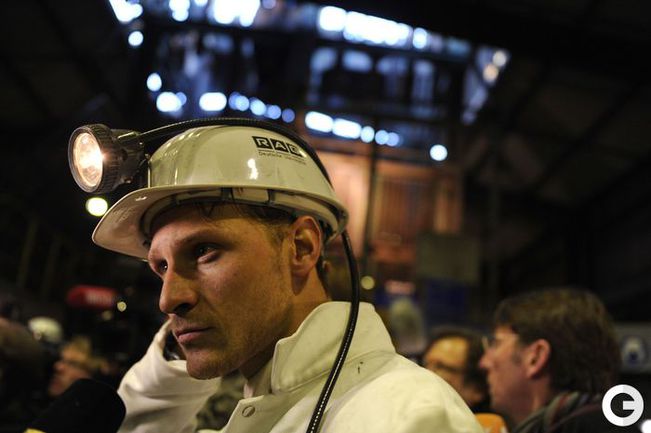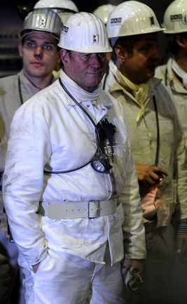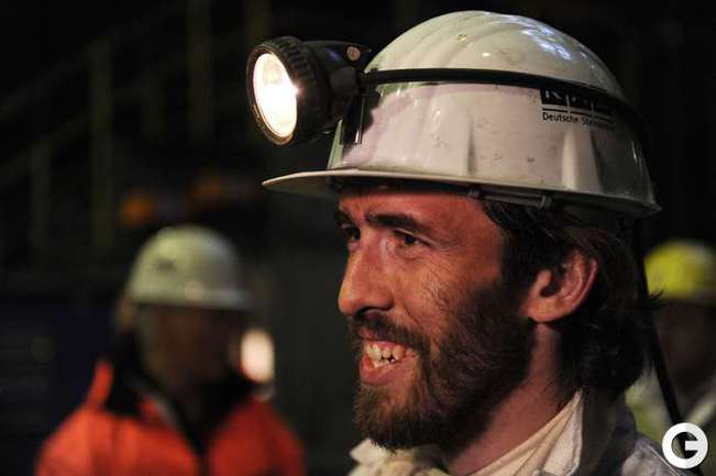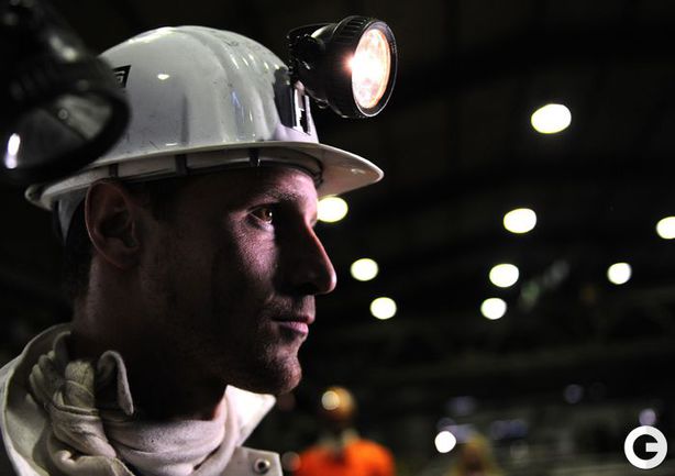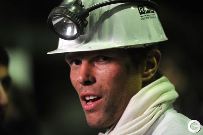 16 января 2012 года. Готовясь к матчам второй половины чемпионата Германии по футболу футболисты "Шальке-04" отправились на экскурсию на шахту Auguste Victoria в Марле. Фото AFP