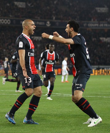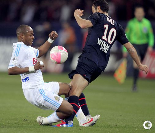 Футбол. Чемпионат Франции. 31-й тур. ПСЖ (Париж) - "Марсель" - 2:1. Голы: Жереми Менез, 6 (1:0), Андре Айю, 59 (1:1), Алекс 61 (2:1). Удаление: Мохамед Сиссоко(ПСЖ) 86. Фото AFP