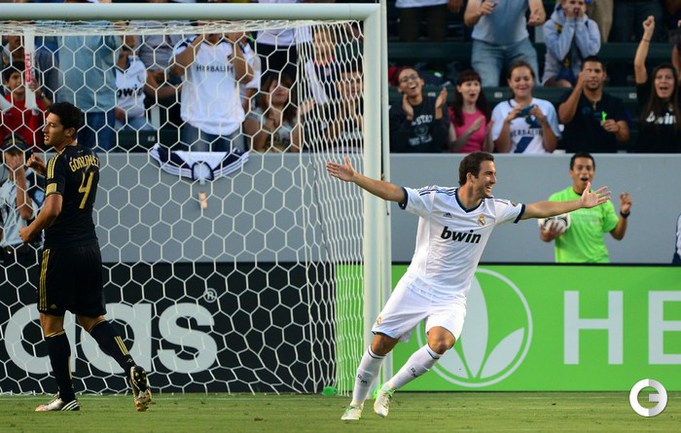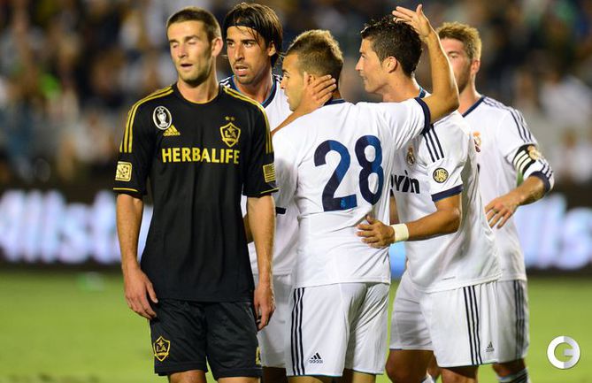 Футбол. Товарищеский матч. США. Лос-Анджелес Гэлакси (Лос-Анджелес, США) – Реал М (Мадрид, Испания) – 1:5. Голы: Игуаин, 2 (0:1); Ди Мария, 11 (0:2); Лопес, 23 (1:2); Кальехон, 36 (1:3); Мората, 49 (1:4); Хесе, 84 (1:5). Фото AFP