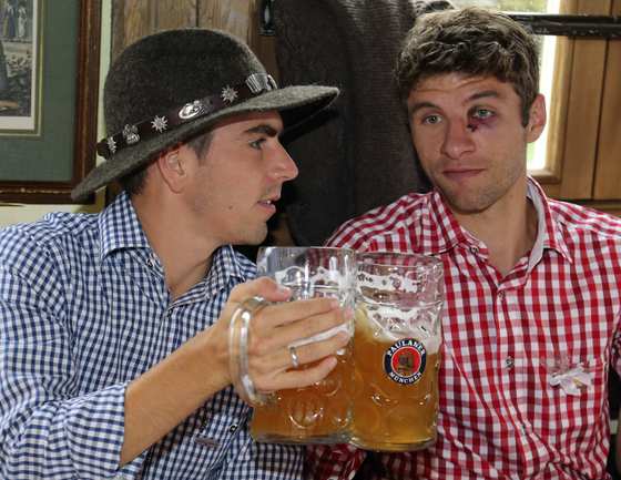 Футболисты "Баварии" на пивном фестивале в Мюнхене. Фото REUTERS