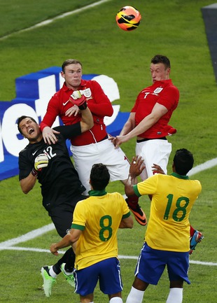 Футбол. Рио-де-Жанейро. Товарищеский матч. Бразилия – Англия – 2:2. Голы: Фред, 57 (1:0). Окслейд-Чемберлен, 67 (1:1). Руни, 79 (1:2). Паулинью, 82 (2:2). В первом официальном матче на реконструированном к чемпионату мира легендарном стадионе "Маракана" Бразилия и Англия сыграли вничью. Все голы были забиты во втором тайме, причем обе команды выходили вперед – сначала хозяева – 1:0, а потом британцы – 2:1.Фото AFP, REUTERS