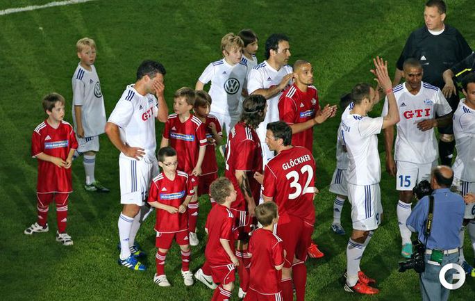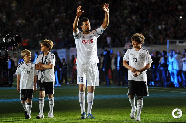 Футбол. Лейпциг. Товарищеский матч. Друзья Баллака – Сборная мира – 3:4. Голы: Баллак (2), Шюррле – Дрогба (2), Баллак, Нойендорф. В Лейпциге состоялся прощальный матч экс-полузащитника сборной Германии Михаэля Баллака. Сборная "Друзья Баллака" встречалась со сборной мира. Сам виновник торжества провел по тайму за каждую из команд и в общей сложности забил три мяча. Фото AFP, REUTERS