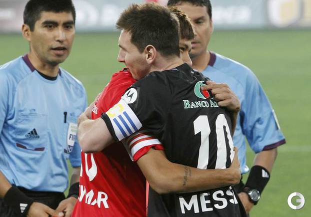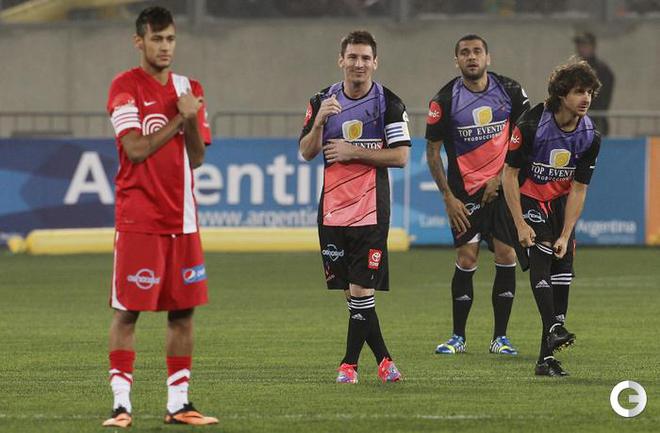 Футбол. Лима (Перу). Благотворительный матч. "Месси и его друзья" – "Неймар и остальные мировые звезды" - 8:5 (5:0). Голы: Месси, 11 (1:0), Дани Алвес, 14 (2:0). Освальдо, 24 (3:0). Месси, 37 (4:0). Аймар, 41 (5:0). Рамирес, 49 (5:1). Лавесси, 51 (6:1). Неймар, 54 (6:2). Малуда, 55 (6:3). Буонанотте, 61 (7:3). Лавесси, 67 (8:3). Дани Алвес, 68 – с пенальти (8:4). Неймар, 74 (8:5). В благотворительном матче "Месси и его друзья" – "Неймар и остальные мировые звезды" победу одержала команда аргентинского нападающего "Барселоны". Стоит отметить, что главным тренером Месси в этом матче был наставник сборной России Фабио Капелло, а Неймара – экс-главный тренер ЦСКА Зико. Звездный аргентинец и его бразильский партнер по "Барселоне" оформили дубли. Фото REUTERS