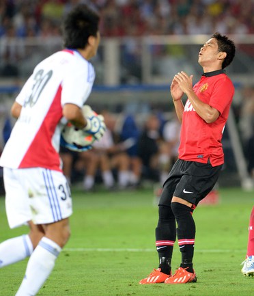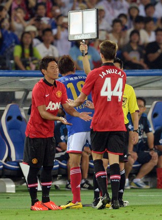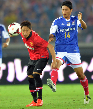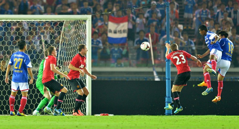 Йокогама (Япония). Футбол. Товарищеский матч. "Йокогама ФМ" (Япония) – "Манчестер Юнайтед" (Англия) – 3:2 (2:1). Голы: Маркиньос, 1 (1:0), Лингард, 19 (1:1), Масаказу Таширо, 31 - в свои ворота (1:2), Агияр, 49 (2:2), Фуджита, 87 (3:2). В ходе азиатского турне "Манчестер Юнайтед" уступил в товарищеском матче японскому клубу "Йокогама" со счетом 2:3. Это уже второе поражение чемпионов Англии под руководством Дэвида Мойеса. Фото AFP