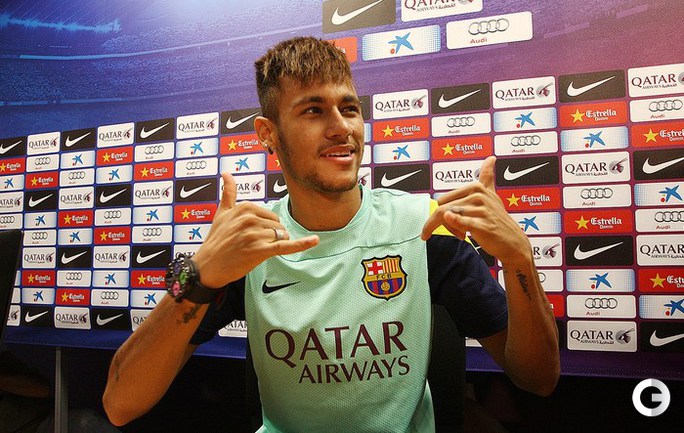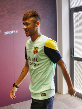 Бразильский новичок "Барселоны" Неймар на своей первой пресс-конференции в составе каталонского клуба. Фото REUTERS и AFP