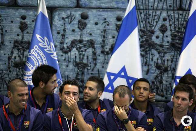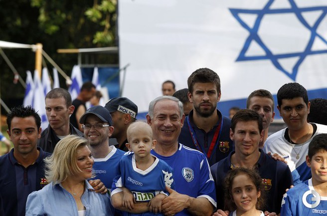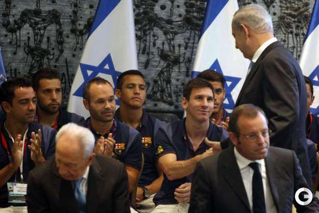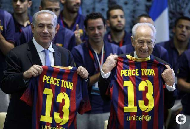 По инициативе президента Израиля Шимона Переса испанская "Барселона" прибыла в Израиль с миссией мира. Игроки посетили в Иерусалиме величайшую святыню иудаизма Стену Плача. Затем их принял в своей резиденции президент страны. Вместе с Премьер-министром Израиля Биньямином Нетаньяху звезды мирового футбола приняли участие в открытой тренировке для израильских и палестинских подростков в Тель-Авиве. Накануне футболисты посетили Базилику Рождества в Вифлееме, стадион "Адура" в Хевроне на Западном берегу реки Иордан, встретились с президентом Государства Палестина Махмудом Аббасом. Фото AFP