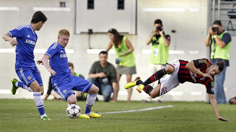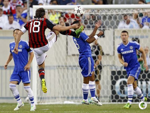 Нью-Джерси. В матче международного турнира в США "Челси" обыграл "Милан" со счетом 2:0. В финале лондонцы встретятся с "Реалом" – бывшим клубом главного тренера "синих" Жозе Моуринью. "Челси" (Англия) – "Милан" (Италия) – 2:0 (1:0). Голы: Де Брюин, 29 (1:0). Шюррле, 90 (2:0). Фото AFP, REUTERS