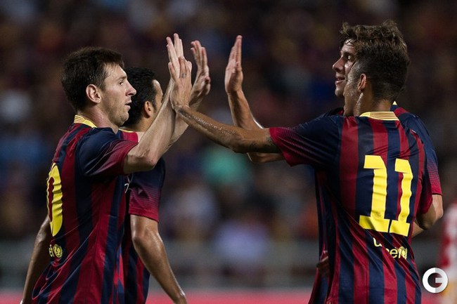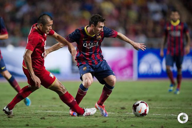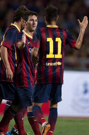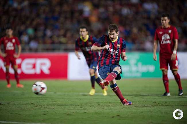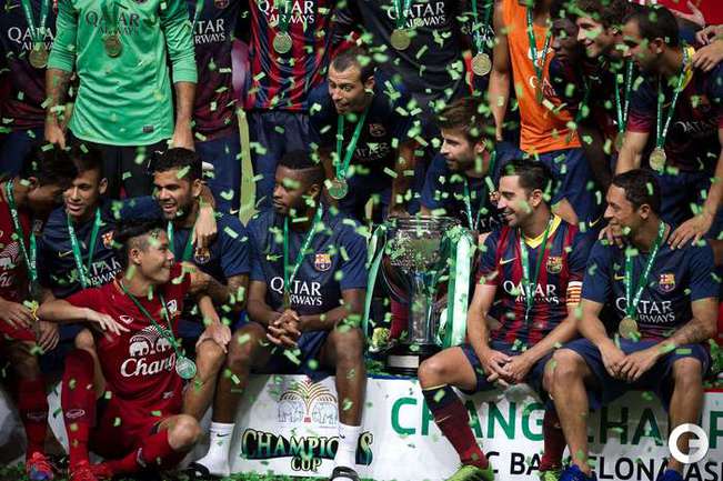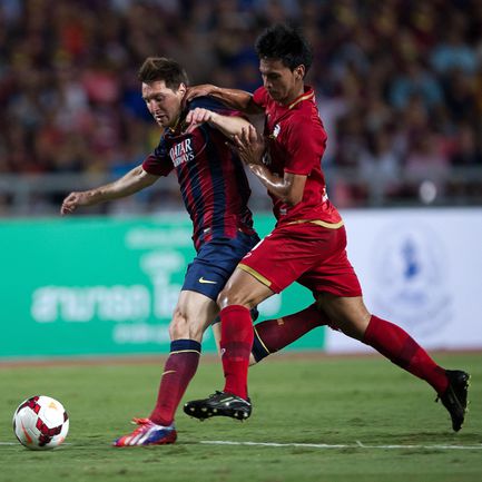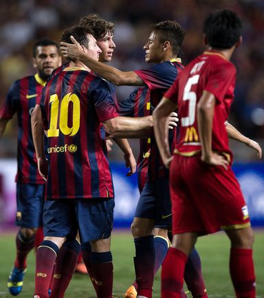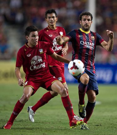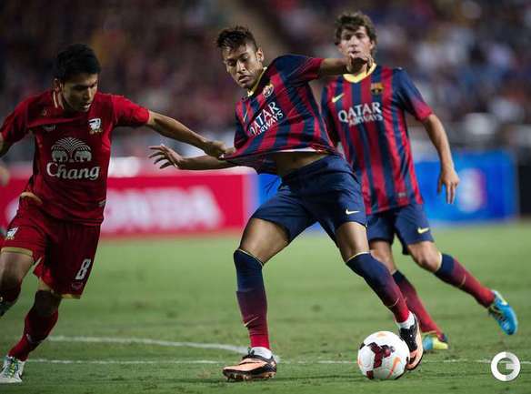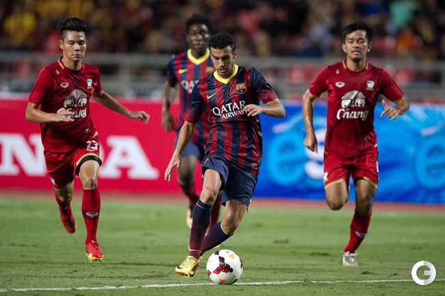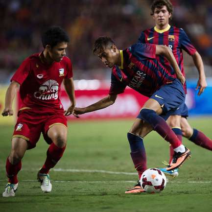 Футбол. Товарищеский матч. Таиланд – "Барселона" – 1:7 (1:5). Голы: Неймар 12’ – 0:1, Месси 14’ (пенальти) – 0:2, Педро 19’ – 0:3, Месси 25’ – 0:4, Педро 35’ – 0:5, Тирасил 44’ (пенальти) – 1:5, Педро 48’ – 1:6, Санчес 50’ – 1:7. Фото AFP