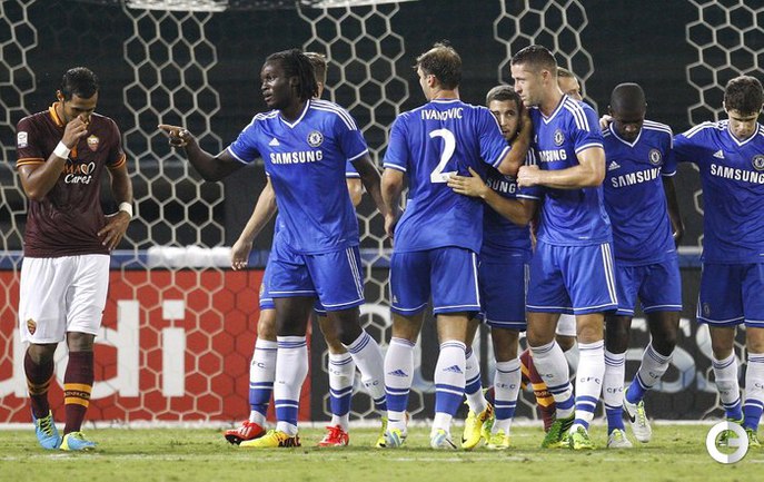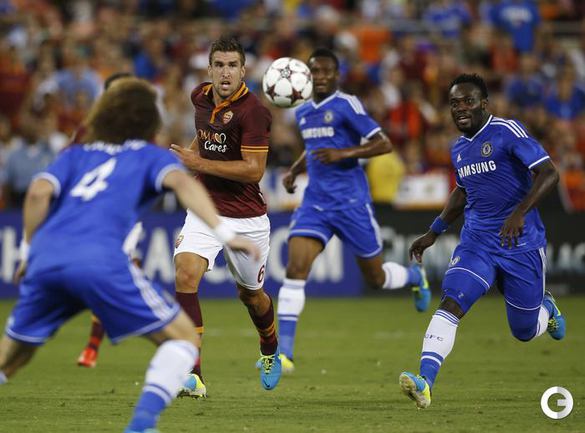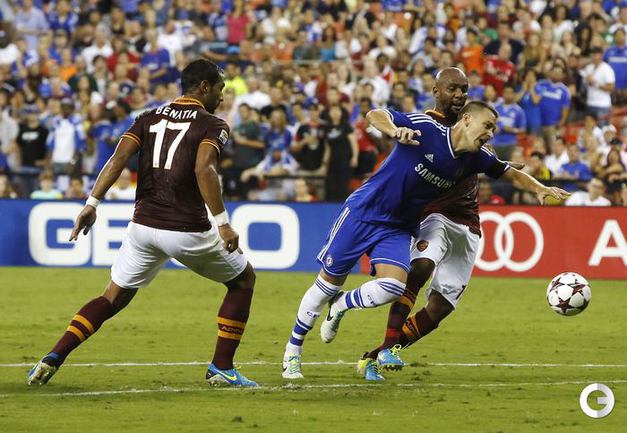 Футбол. Вашингтон. "Челси" одержал победу в товарищеском матче против "Ромы" (2:1). Счет на 20-й минуте открыл игрок римского клуба Эрик Ламела. В середине второго тайма Фрэнк Лэмпард сравнял счет, а в концовке встречи Ромелу Лукаку принес лондонцам победу. Фото REUTERS