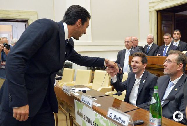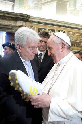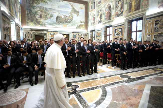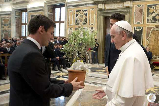 Ватикан. Сборные Аргентины и Италии были удостоены аудиенции у главы римской католической церкви накануне товарищеского матча в Риме. Капитаны команд Лионель Месси и Джанлуиджи Буффон подарили папе Франциску оливковое дерево, а тот в свою очередь дал им небольшое напутствие накануне игры. Фото AFP, REUTERS