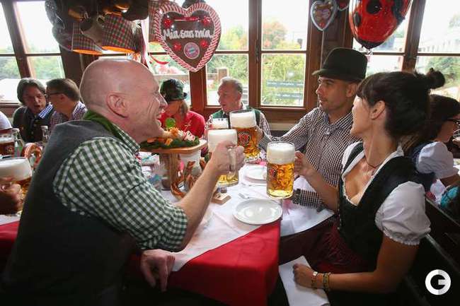 Футболисты мюнхенской "Баварии", соперника ЦСКА в Лиге чемпионов, стали участниками знаменитого пивного фестиваля Октоберфест. Фото REUTERS и AFP