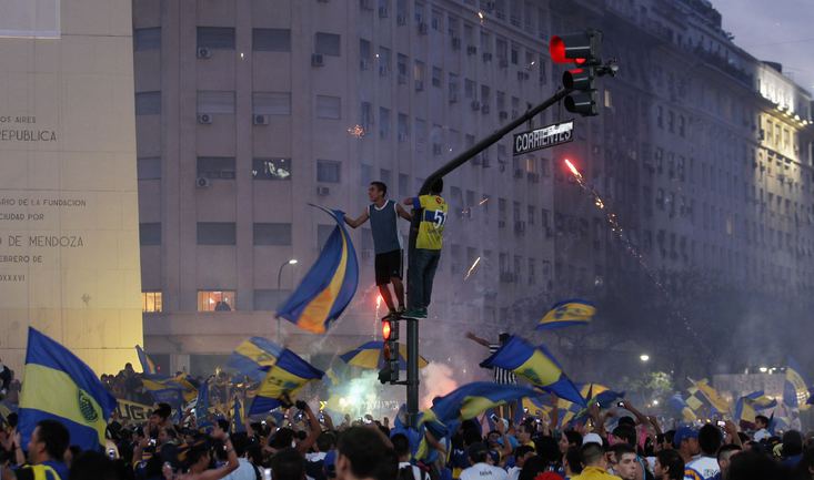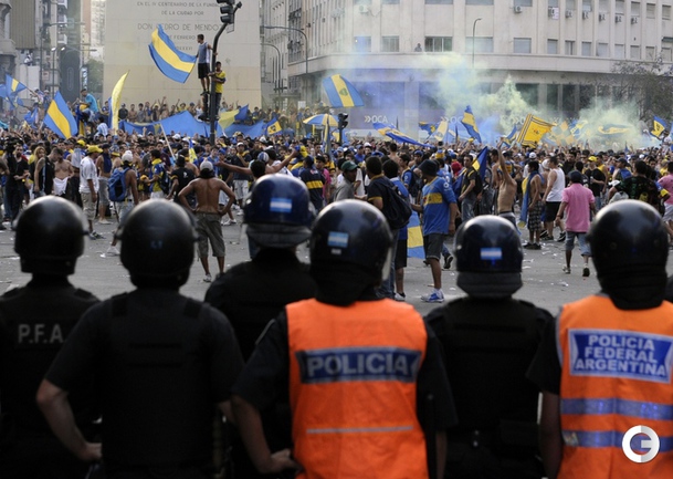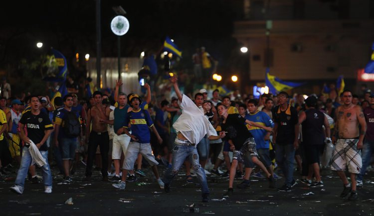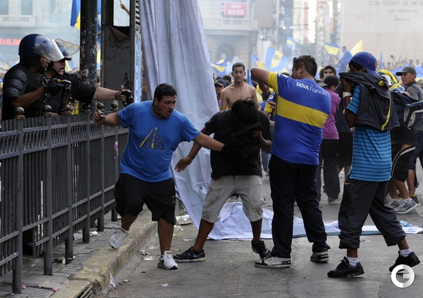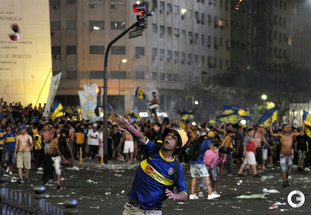 Болельщики футбольного клуба "Бока Хуниорс", которые отмечали день болельщика клуба устроили беспорядки в Буэнос-Айресе. Фото AFP и REUTERS