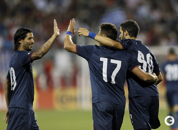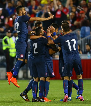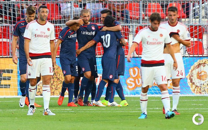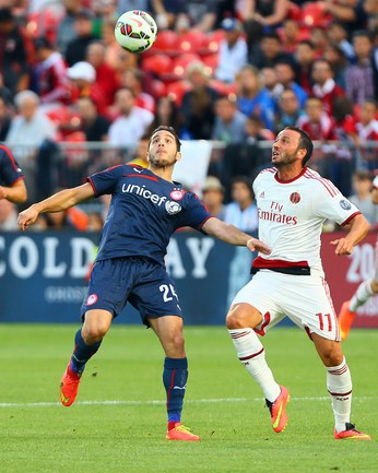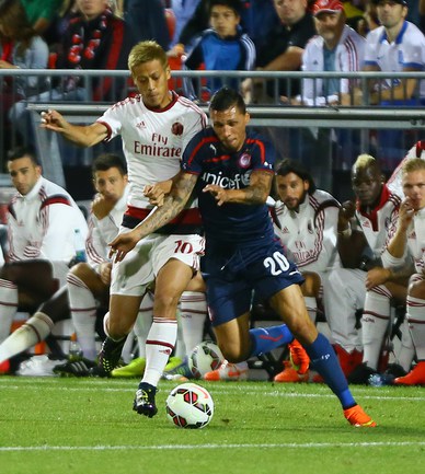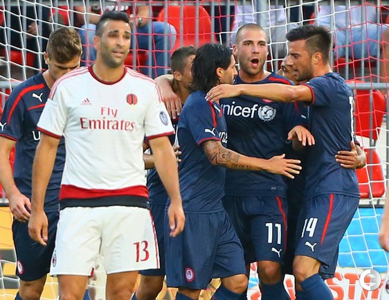 Футбол. Торонто. Товарищеский матч. "Олимпиакос" (Греция) – "Милан" (Италия) – 3:0 (1:0). Голы: Домингес, 16 (1:0). Диамантакос, 49 (2:0). Бухалакис, 78 (3:0). Экс-полузащитник ЦСКА Кейсуке Хонда вышел на поле в составе "россонери" на 76-й минуте. Один из мячей забил бывший нападающий "Рубина" Алехандро Домингес. Фото AFP и REUTERS