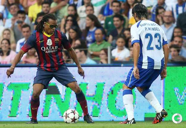 Португальский полузащитник Деку провел свой прощальный матч. В товарищеском поединке команд "Барселона-2006" и "Порту-2004", завершившемся вничью – 4:4, сыграли Лионель Месси, Самюэль Это'О, Эдгарас Янкаускас, Дмитрий Аленичев и ряд других известных футболистов. Сам хавбек сыграл за оба коллектива и в каждом отметился голом. Игра завершилась вничью – 4:4. Фото AFP