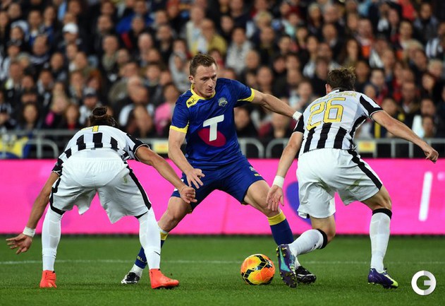 Футбол. Сидней. Товарищеский матч. "Ювентус" (Италия) – Сборная австралийской лиги – 3:2 (0:1). Голы: Карруска, 9 (0:1). Льоренте, 59 (1:1). Юрич, 77 (1:2). Погба, 88 (2:2). Пепе, 90+3 (3:2). "Ювентус": Буффон (Сторари, 71), Касерес, Бонуччи, Эвра (Асамоа, 71), Лихштайнер, Погба, Пирло, Маркизио (Пепе, 85), Огбонна, Тевес, Льоренте (Джовинко, 86). за австралийцев сыграл экс-игрок "старой синьоры" Алессандро Дель Пьеро. Фото AFP и REUTERS