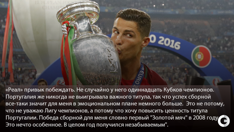 В понедельник форвард "Реала" и сборной Португалии Криштиану Роналду был назван обладателем "Золотого мяча"-2016. Лучшим игроком на планете он стал в четвертый раз в карьере. "СЭ" приводит ряд ярких цитат футболиста – о себе, "Золотом мяче" и не только.