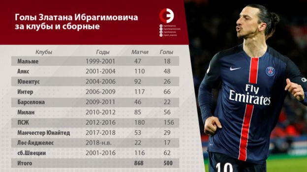 500 голов Ибрагимовича. За кого он забивал и сколько?