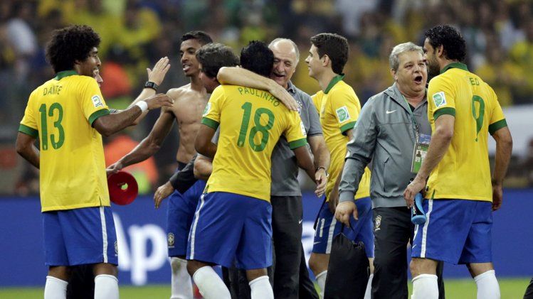 Бразилия: Жулиу Сезар, Даниэл Алвес, Тиагу Силва, Давид Луиз, Марселу, Паулинью, Оскар (Эрнанес, 73), Луиз Густаву, Халк (Бернард, 64), Фред, Неймар (Данте, 90+2).