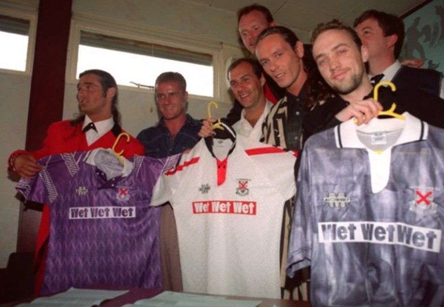 В начале 90-х титульным спонсором малоизвестного шотландского клуба "Клайдбанк" неожиданно стала гораздо более популярная в мире рок-поп-группа "Wet Wet Wet". Ее хит "Love Is All Around" в свое время целых 15 недель держался на вершине общенационального хит-парада Великобритании и наверняка знаком очень многим в России. И вот в какой-то момент музыканты решили поддержать своих земляков-футболистов, поскольку и сами родились в городке Клайдбанк.