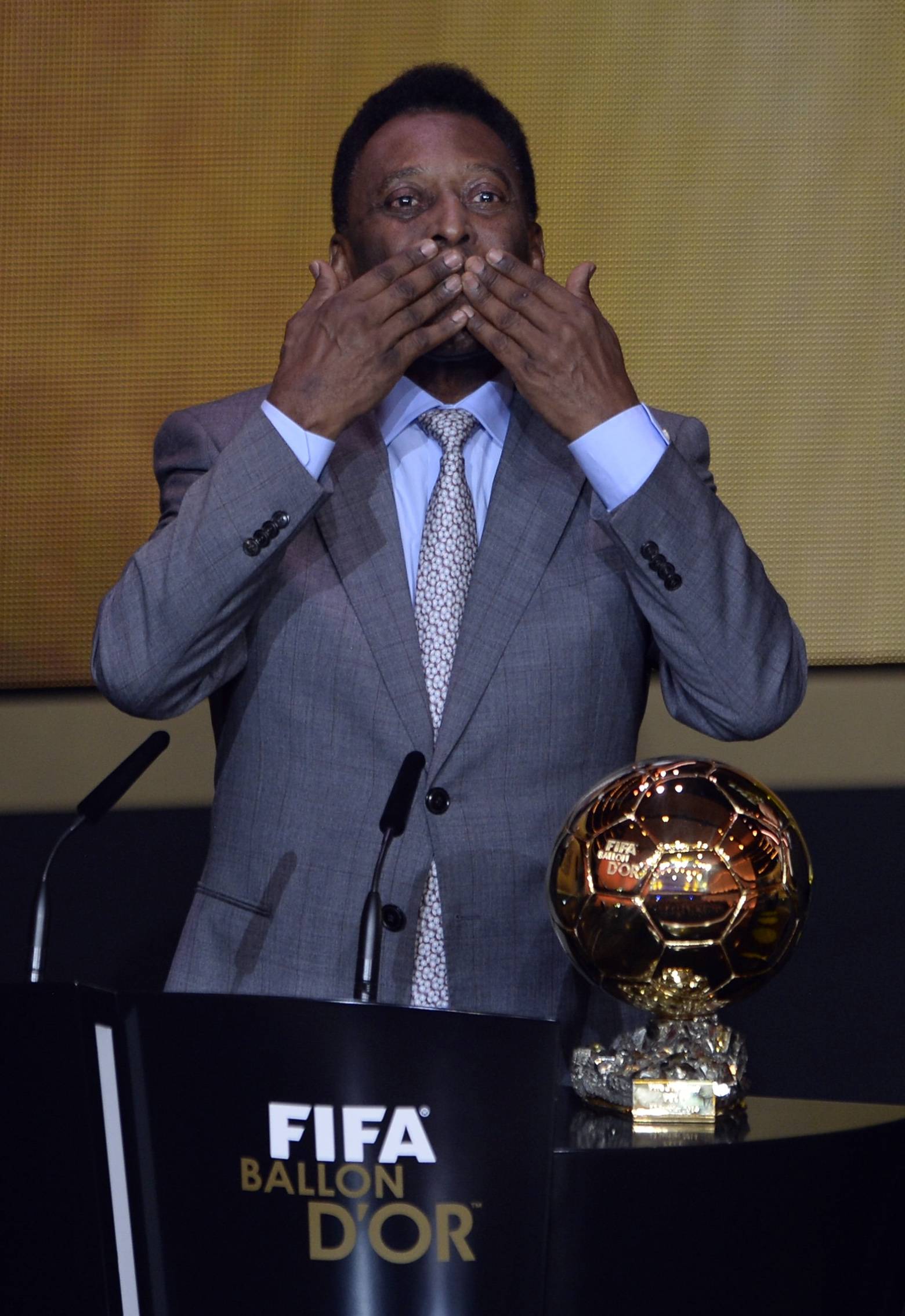 Глава ФИФА Йозеф Блаттер и главный редактор France Football Франсуа Маренье наградили первого обладателя новой награды – почетного "Золотого мяча". Им за особые заслуги было решено отметить единственного трехкратного чемпиона мира, автора более тысячи голов за карьеру, легендарного форварда сборной Бразилии Пеле.