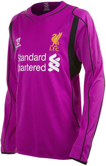 Заслуживает внимания и яркая (фиолетовая с черными вставками) футболка вратаря "Ливерпуля":