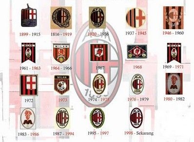Эмблема "Милана", не раз менявшая свой облик: к традиционным красно-черным цветам и красному кресту на белом фоне, который является частью герба города, добавлялись, например, изображения дьявола.