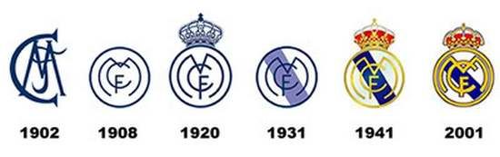 Первой эмблемой клуба стало сочетание "инициалов" клуба – синие M (Мадрид), C (клуб) и F (футбольный), помещенный на белый фон. Спустя десятилетие его пополнили элементы городского герба, которые и стали прародителями современного дизайна. Примечательно, что на время гражданской войны с него исчезала корона (ввиду антимонархической направленности ее движущих сил), зато появилась полоса, обозначающая принадлежность "Реала" к исторической области Кастилия.