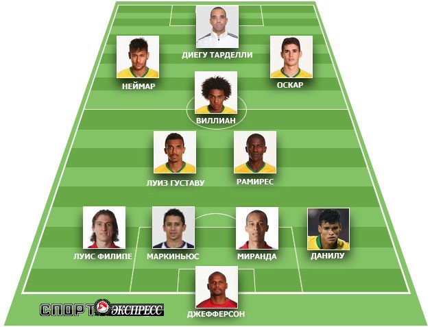 А там несчастного Фреда, ставшего объектом насмешек после чемпионата мира, подменили шустрым (в сравнении с Фредом – уж точно) Диегу Тарделли. В двух товарищеских матчах с Дунгой во главе бразильская сборная действовала, по сути, без нападающего. Тарделли, знакомый российским болельщикам по выступлениям за "Анжи", много перемещался, часто принимал мяч на фланге, освобождая центральную зону для Неймара. Тарделли идеально справлялся с возложенной на него миссией.