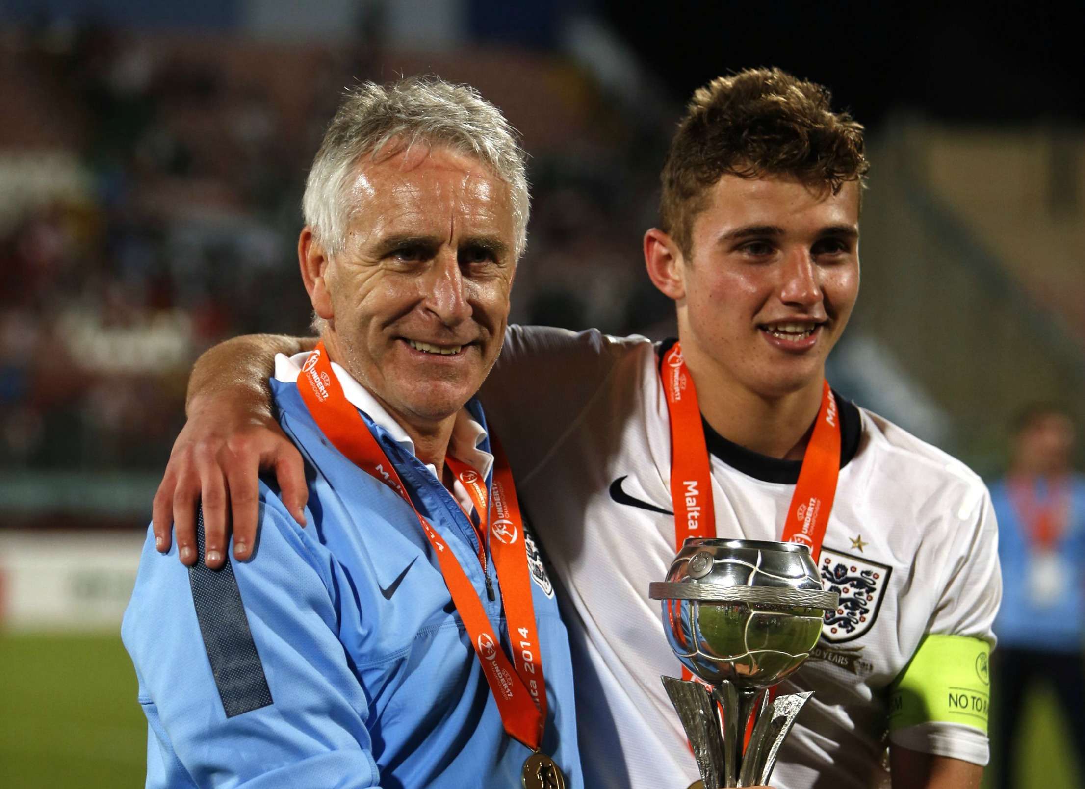 Полузащитник Райан ЛЕДСОН и и главный тренер юношеской сборной Англии Джон ПИКОК. Фото AFP