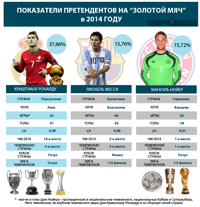 Претенденты: Лионель Месси (Аргентина, "Барселона"), Мануэль Нойер (Германия, "Бавария").