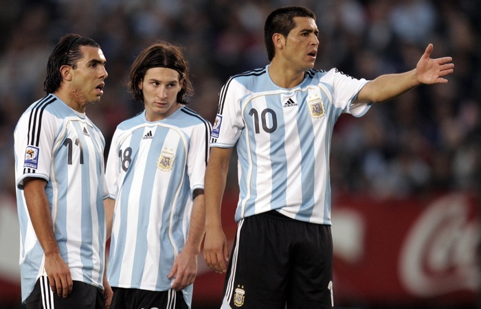2007 год. Игроки аргентинской сборной Карлос ТЕВЕС, Лионель МЕССИ и Хуан Роман РИКЕЛЬМЕ. Фото REUTERS