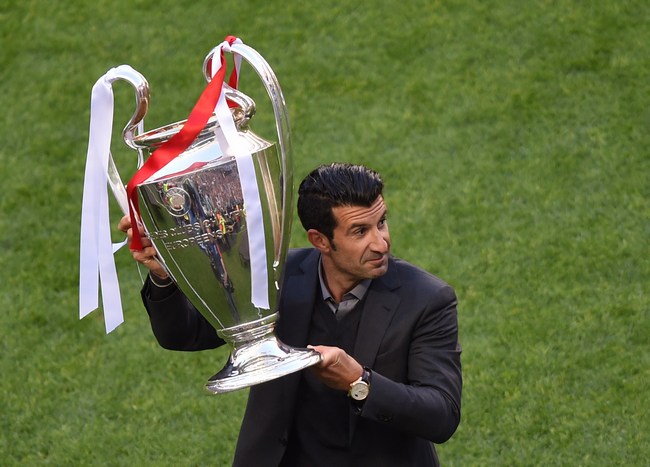 24 мая 2014 года. Лиссабон. Луиш ФИГУ с главным трофеем Лиги чемпионов в преддверии финала между "Реалом" и "Атлетико". Фото AFP