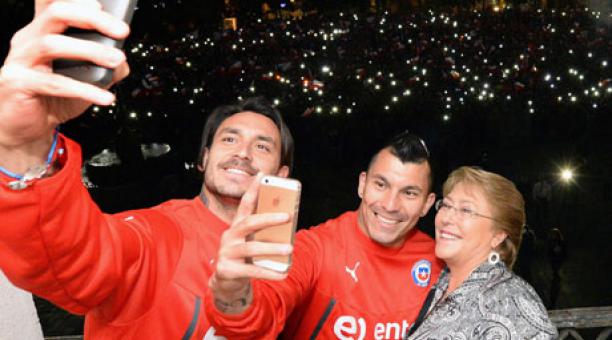 После победы на Кубке Америки сборная Чили отправилась в президентский дворец "Ла Монеда", чтобы разделить счастливый момент со своей главной фанаткой. Сеньора Бачелет не только разрешила триумфаторам как следует побуянить в исторических палатах, скандируя: "Чили – чемпион!", но и вместе с командой вынесла кубок ликующей толпе болельщиков и сделала пару селфи на память.
