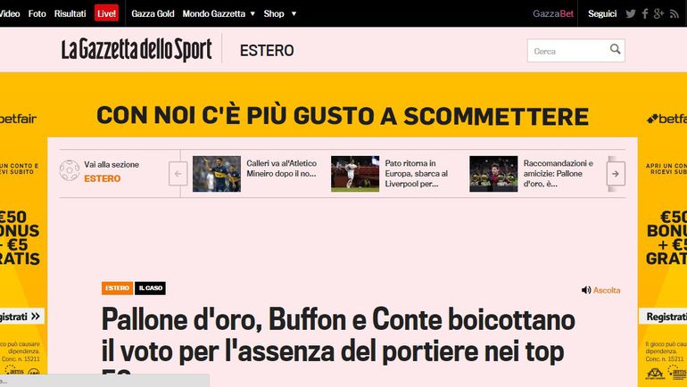Издание также подмечает, что, помимо Буффона, в голосовании не приняли участие Клаудио Браво и Икер Касильяс и даже намекает на некоторую солидарность голкиперов. Правда, в результате оказалось, дело не во вратарском профсоюзе, а в обыкновенной халатности – Федерация футбола Испании отправила своему капитану нужные документы слишком поздно, меньше, чем за сутки до дедлайна, поэтому он и не успел проголосовать.