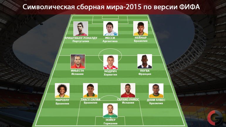 Речь идет о количестве представителей "Реала" и "Барселоны" в символической сборной. Дани Алвес, Андрес Иньеста, Лионель Месси и Неймар от каталонцев и гости из столицы: Марсело, Серхио Рамос, Криштиану Роналду и Лука Модрич.