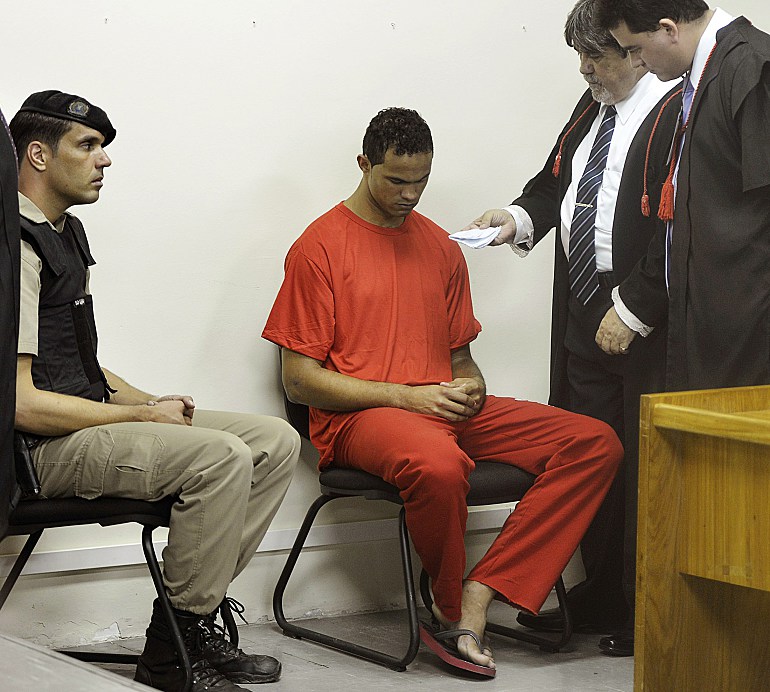 Дикая история случилась летом 2010-го в Бразилии. Теперь уже бывший вратарь "Фламенго" был обвинен в убийстве 25-летней модели Элизы Самудиу, матери своего младшего ребенка. По данным обвинения, преступление было спланировано очень тщательно: участвовали в нем восемь человек, среди которых были в том числе бывшая жена игрока Дайана, двоюродный брат, несовершеннолетний племянник и даже офицер полиции. Причиной конфликта футболиста и модели послужила нежеланная беременность девушки: платить алименты Соуза не хотел, а Элиза грозилась подать в суд. В итоге двоюродный брат футболиста похитил женщину, запер в своем доме, где убил после пыток на глазах голкипера. Тело братья расчленили и скормили своим собакам... По итогам суда 28-летний вратарь приговорен к 22 годам и трем месяцам лишения свободы, непосредственный убийца женщины, Феррейра Румау, – к 15 годам тюрьмы, а вот Дайана Родригес Кармо была оправдана.