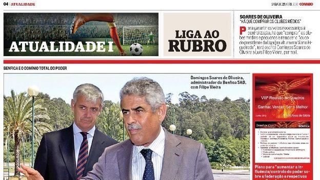 В 2012 году "Бенфика" разработала план по увеличению влияния на футбол Португалии путем контроля арбитров, судебной власти, политиков и СМИ. Этот план был представлен в презентации PowerPoint и упомянут в переписке между администратором клуба и президентом Луищем Филипе Виейрой. Переписка всплыла в "Деле электронных писем".