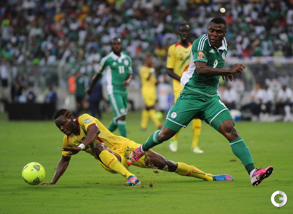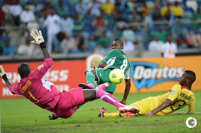 Футбол. Кубок Африки. Дурбан (ЮАР). Полуфинал. Стадион Мозес Мабида. Мали - Нигерия - 1:4 (0:3). Третий гол за нигерийцев забил спартаковец Эммануэль Эменике, четвертый - армеец Ахмед Муса. В финале сборная Нигерии сыграет с победителем пары Гана — Буркина Фасо. Фото - AFP