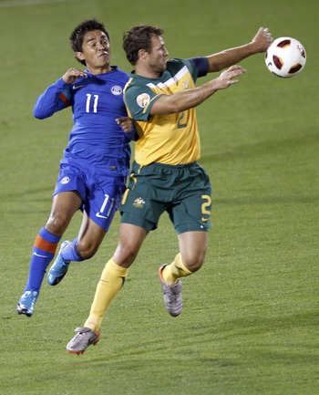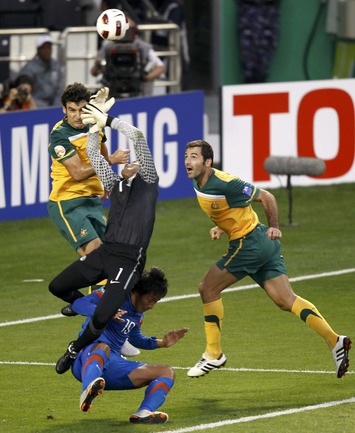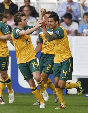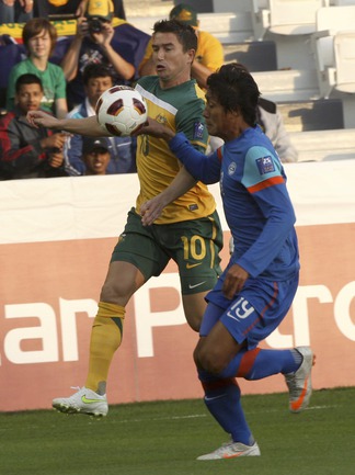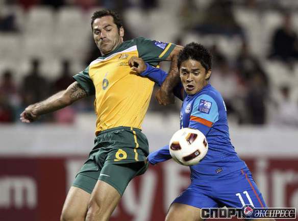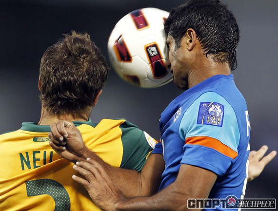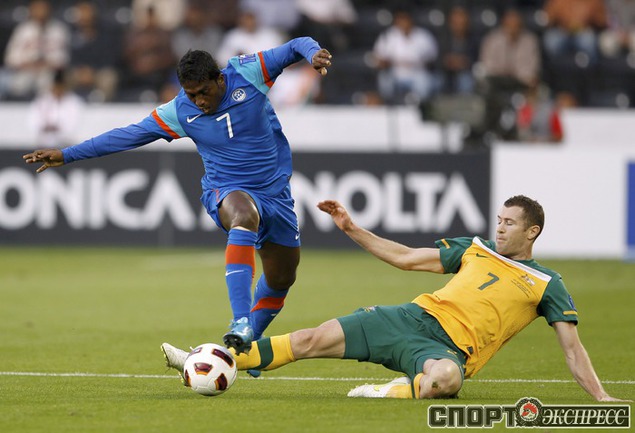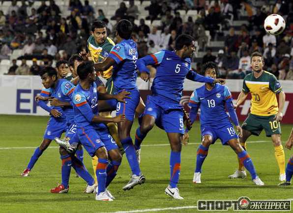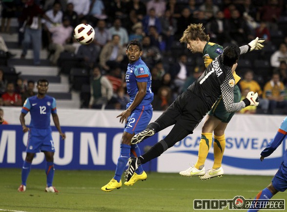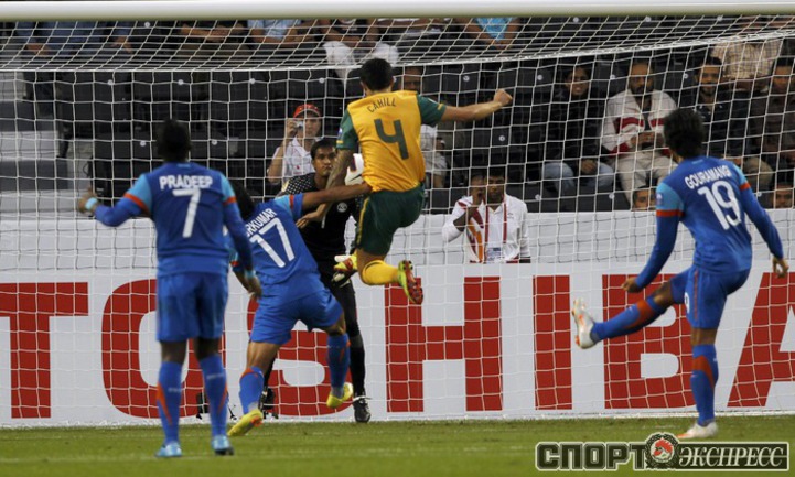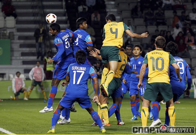 Доха. Кубок Азии. Групповой турнир. 1-й тур. Группа С. Австралия - Индия - 4:0 (3:0). Голы: Кейхилл, 11 (1:0). Кьюэлл, 25 (2:0). Холман, 45 (3:0). Кейхилл, 65 (4:0). Полузащитник московского "Динамо" Люк Уилкшир отыграл за австралийцев весь матч. Фото REUTERS