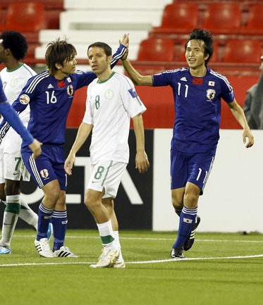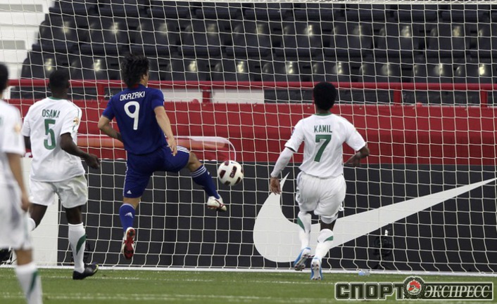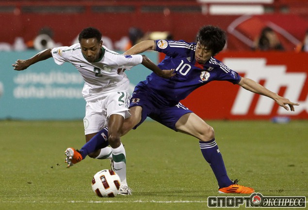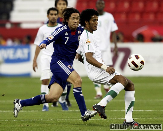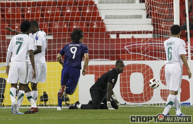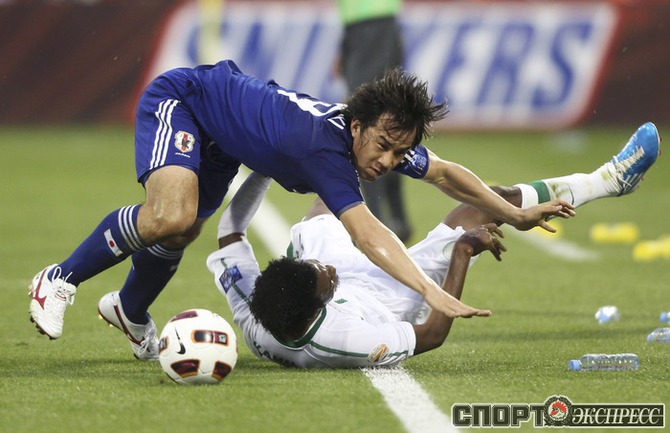 Футбол. Доха. Кубок Азии. Групповой турнир, 3-й тур. Группа B. Саудовская Аравия - Япония - 0:5 (0:3). Голы: Окадзаки, 8 (0:1). Окадзаки, 13 (0:2). Маеда, 19 (0:3). Маеда, 51 (0:4). Окадзаки, 80 (0:5). Полузащитник ЦСКА Кейсуке Хонда не выходил на поле. Фото