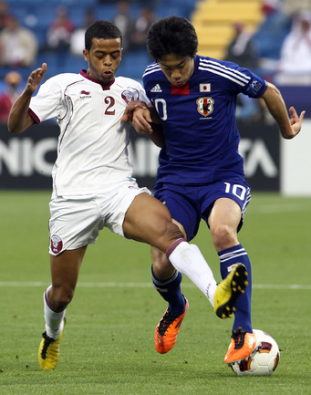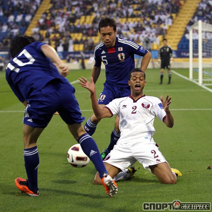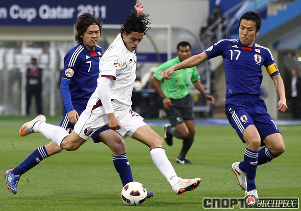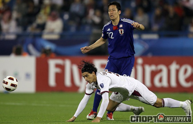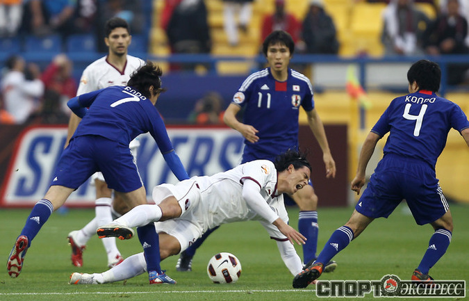 Доха. Футбол. Кубок Азии. 1/4 финала. "Япония" – "Катар" – 3:2. Голы: Сориа, 12 (0:1); Кагава, 27 (1:1); Монтезин, 63 (1:2); Кагава, 70 (2:2); Иноха, 89 (3:2). Удаление: Йошида, 62 (Я). Фото AFP