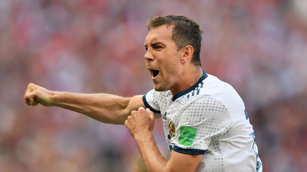 Нападающий сборной России Артем Дзюба бурно отпраздновал ответный гол в ворота Испании в матче 1/8 финала чемпионата мира.