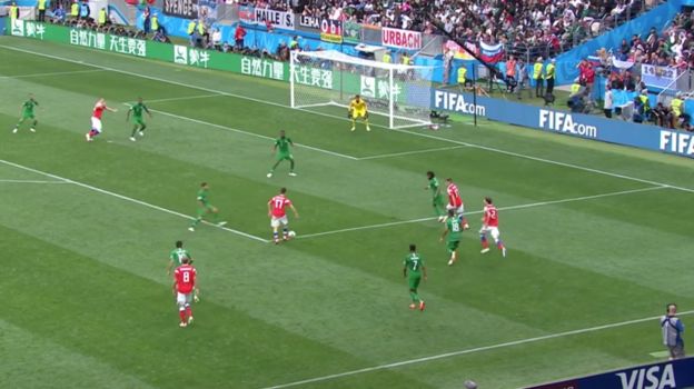 Разбираем, как нападающий сборной России Артем Дзюба сделал счет 3:0 в матче открытия чемпионата мира-2018 с Саудовской Аравией.