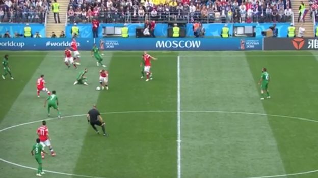 Подробный разбор первого гола, забитого сборной России на чемпионате мира-2018 в матче открытия с Саудовской Аравией.