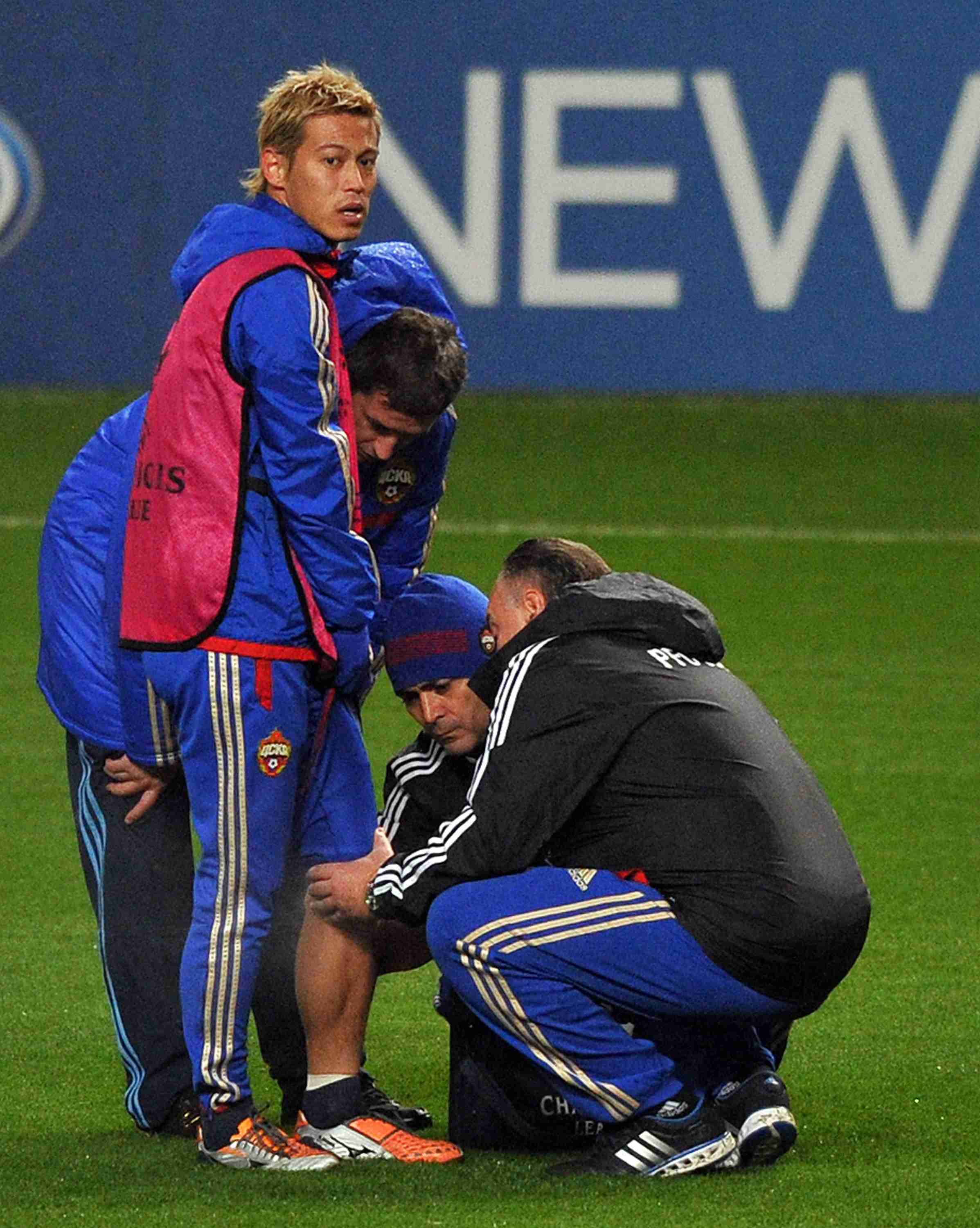 Стоит отметить, что, судя по фотографиям с тренировки армейцев, полузащитник ЦСКА Кейсуке Хонда во время занятия получил болезненное повреждение. Японец указал на левое колено, когда врачи клуба выбежали для оказания помощи.