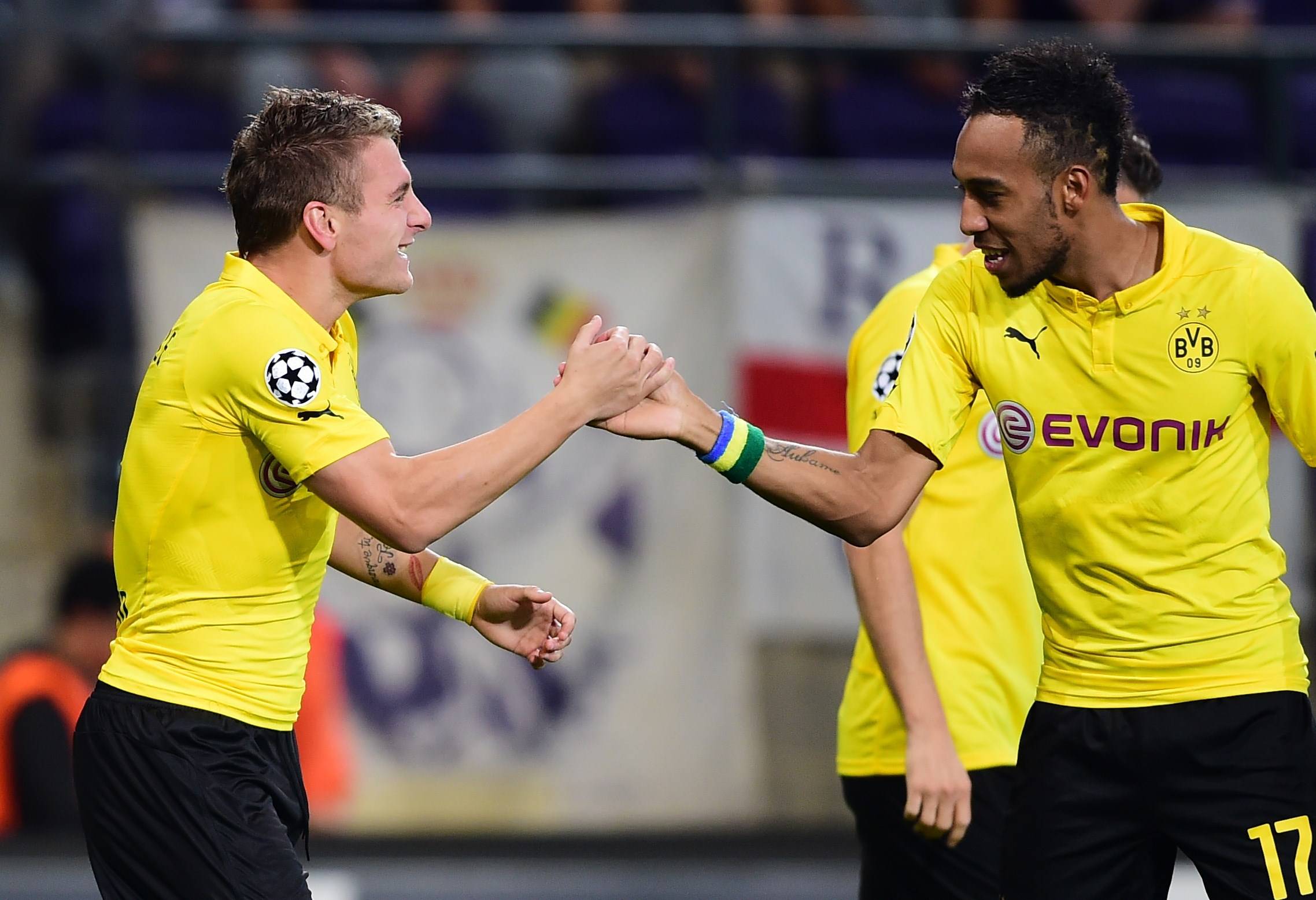 Нападающие "Боруссии" Чиро ИММОБИЛЕ и Пьер-Эмерик ОБАМЕЯНГ. Фото AFP