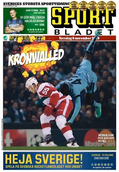 Шведская газета Sport Bladet оригинальным способом оценила игру полузащитника ЦСКА Понтуса Вернблума в выездном матче 4-го тура группового турнира Лиги чемпионов с "Манчестер Сити" (2:1). На обложке издания помещен коллаж, на котором шведский хавбек представлен в образе своего соотечественника – защитника хоккейного "Детройта" Никласа Кронвалла. По мнению издания, в одном из эпизодов в единоборстве с полузащитником "Манчестер Сити" Яя Туре Вернблум применил силовой прием в хоккейном стиле.