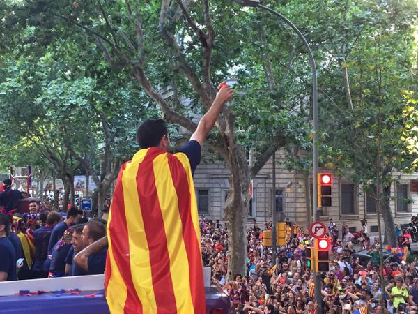 Полузащитник "Барселоны" Хави во время чемпионского парада своей команды праздновал успех укутавшись флагом Каталонии, которая является автономной областью в составе Испании. Напомним, что вчера каталонский клуб одержал победу в финале Лиги чемпионов, переиграв "Ювентус" (3:1). Кроме того, "блаугранас" в этом сезоне выиграли чемпионат и Кубок страны.