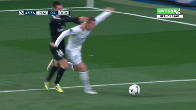 На 44-й минуте матча 1/8 финала Лиги чемпионов "Реал" – "ПСЖ" верное решение принял итальянский рефери Джанлука Рокки, назначивший пенальти в ворота гостей. Судья увидел, как Джовани Ло Сельсо левой рукой задержал Тони Крооса. Полузащитник парижан нарушил правила – такой фол, совершенный в своей штрафной площади, наказывается 11-метровым ударом. (Александр БОБРОВ)